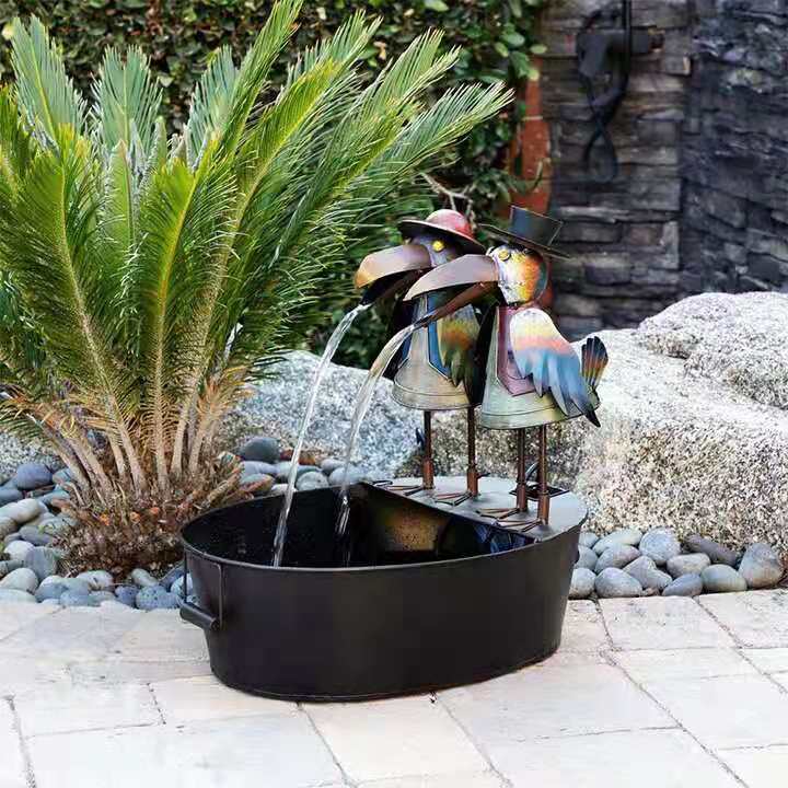 Meleg emlékeztető, ez egy kis napelemes szökőkút saját kis vízpumpával. Csak vizet kell tölteni a kis medencébe, és az állatok ritmikusan permetezhetik a vizet.